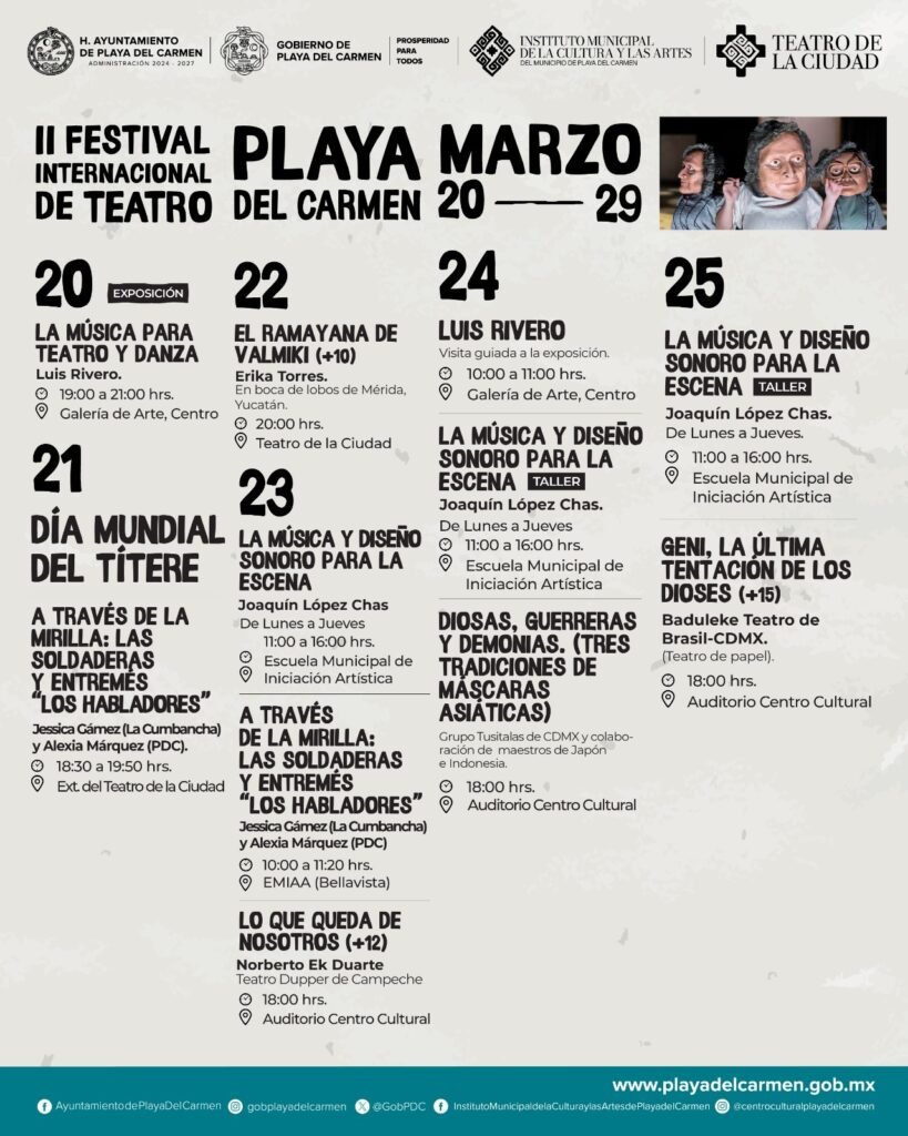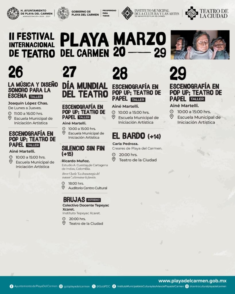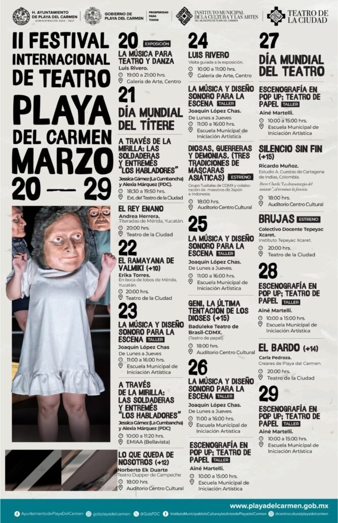 El gobierno municipal que encabeza Estefanía Mercado impulsa a Playa del Carmen como referente cultural en Quintana Roo con la realización del II Festival Internacional de Teatro (FIT), que se celebrará del 20 al 29 de marzo con una programación completamente gratuita y de alcance internacional.