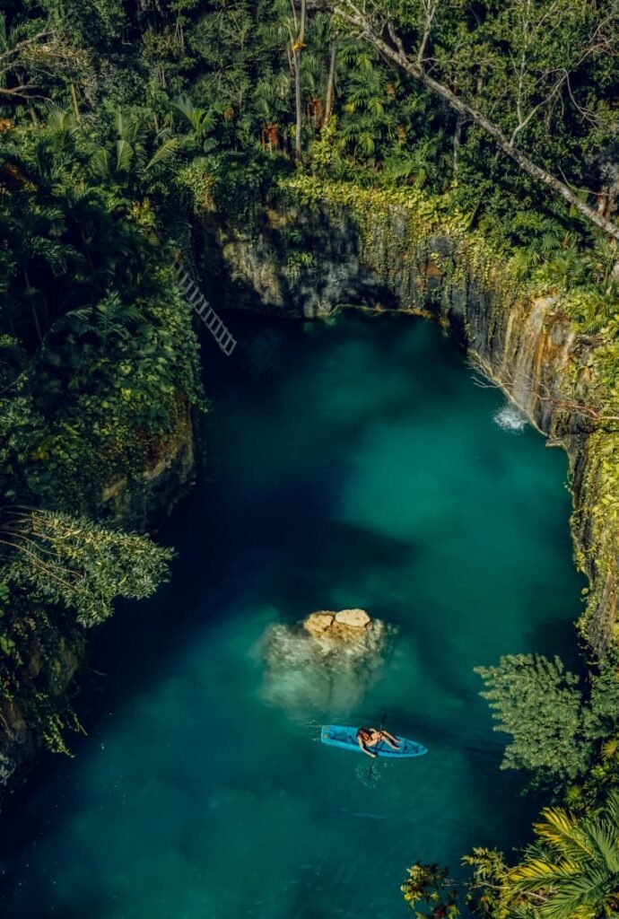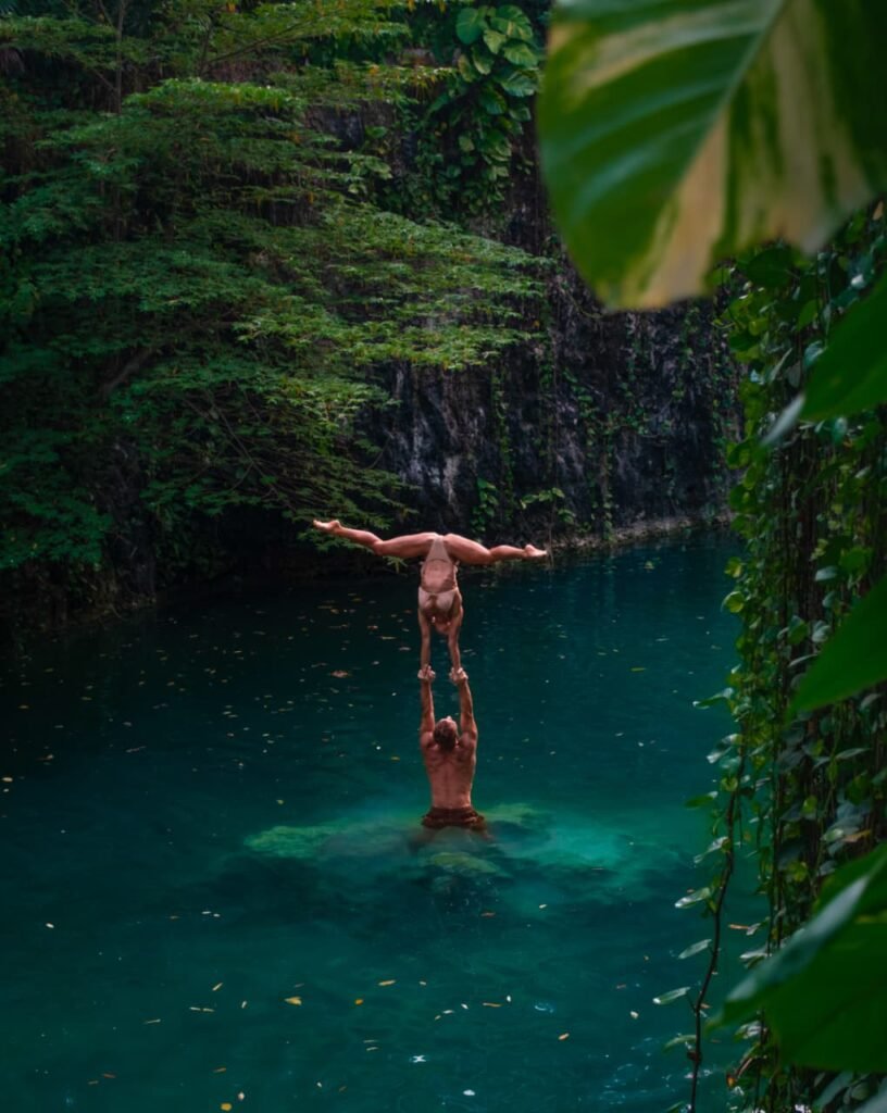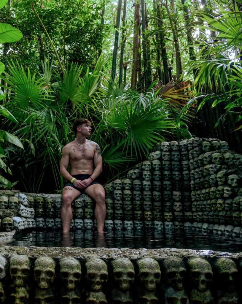 Rodeado de exuberante vegetación, este sitio sorprende a sus visitantes con escenarios fantásticos integrados al entorno natural, donde los cenotes de aguas cristalinas color turquesa y las instalaciones artísticas crean una atmósfera envolvente y casi onírica.