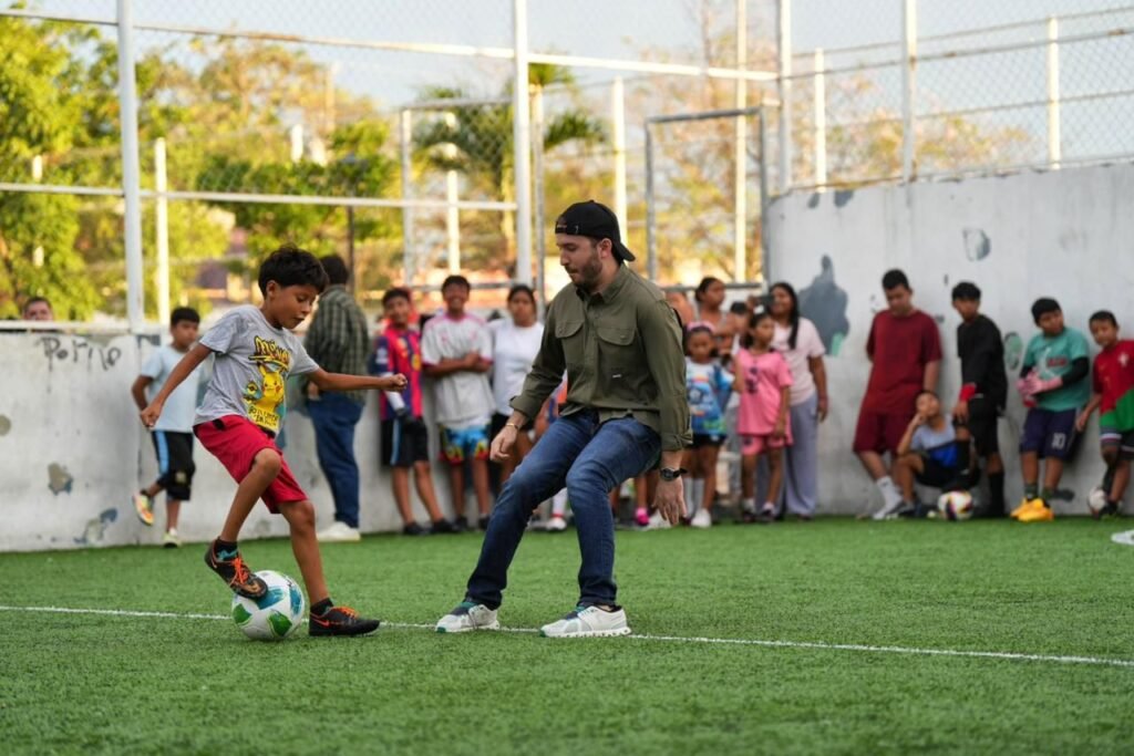 En este marco, el regidor compartió momentos de convivencia con la juventud de la colonia Colosio, donde se brindó el apoyo deportivo e incluso participaron en una cascarita de fútbol.