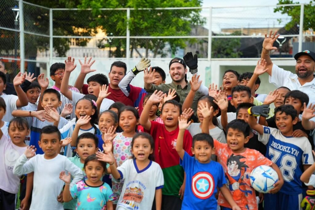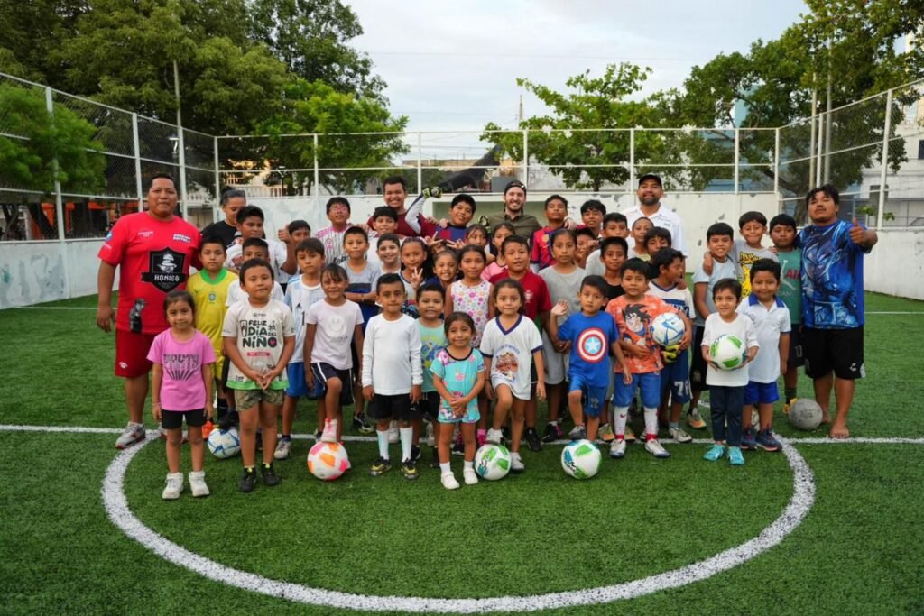 Playa del Carmen, Q. Roo, jueves 25 de septiembre de 2025.- El coordinador y regidor del Partido Verde en Playa del Carmen, Fernando Muñoz Calero, sostuvo un encuentro con niñas, niños y jóvenes del municipio, que forman parte del equipo de fútbol “Chicos del Barrio” del Instituto del Deporte del Gobierno de Playa del Carmen, que encabeza la presidenta Estefanía Mercado.