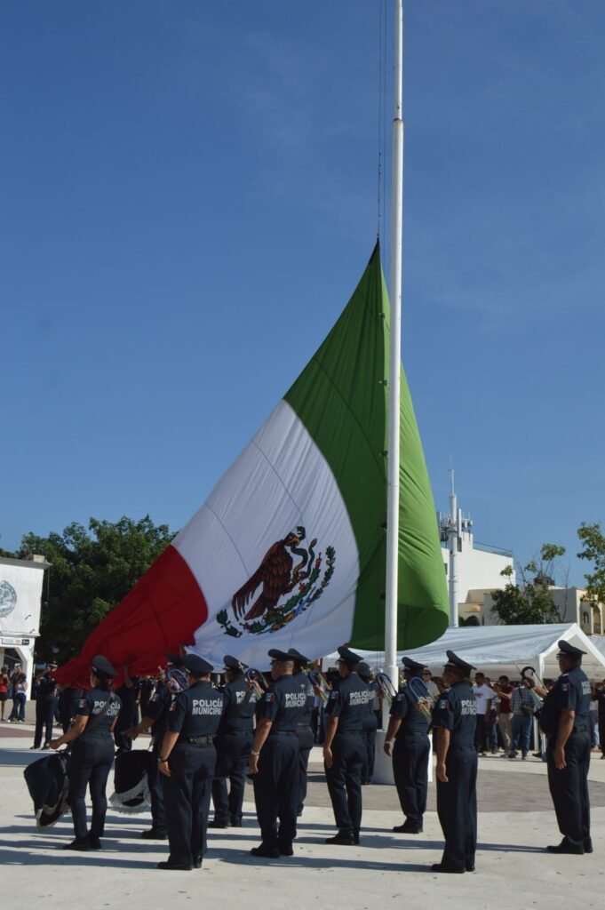 En la ceremonia participaron regidores, secretarios y titulares de distintas áreas municipales, quienes, junto con la ciudadanía, rindieron honores a la bandera monumental y entonaron los himnos Nacional Mexicano y de Quintana Roo.