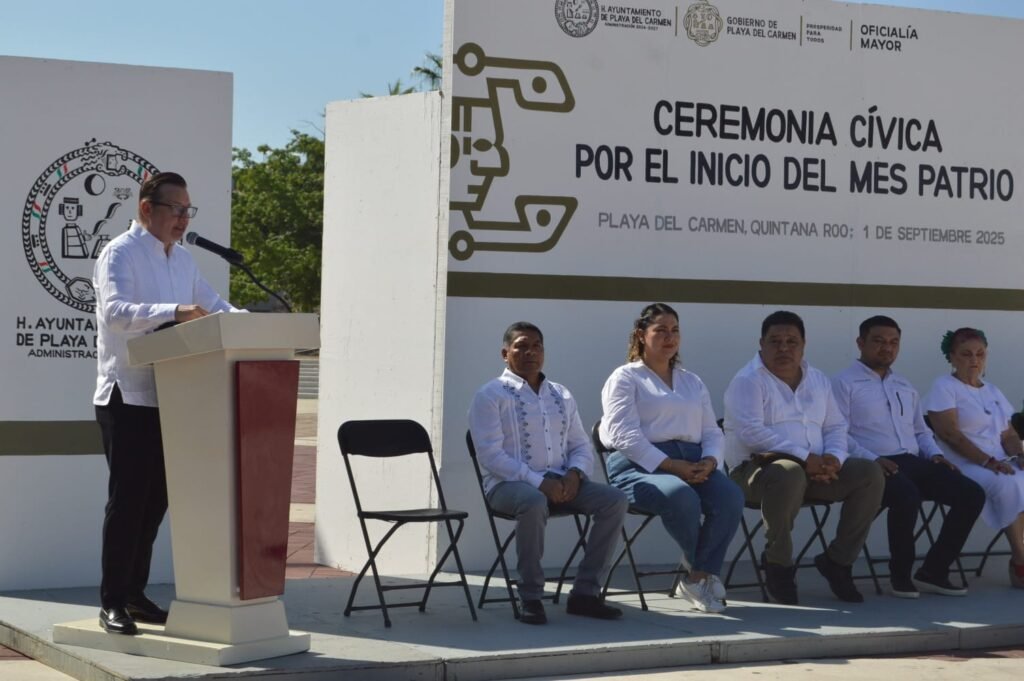 Playa del Carmen dio inicio al mes patrio con una ceremonia cívica de izamiento de la bandera monumental en la Plaza 28 de Julio, donde autoridades municipales hicieron un llamado a la unidad, el compromiso ciudadano y el orgullo por la nación.