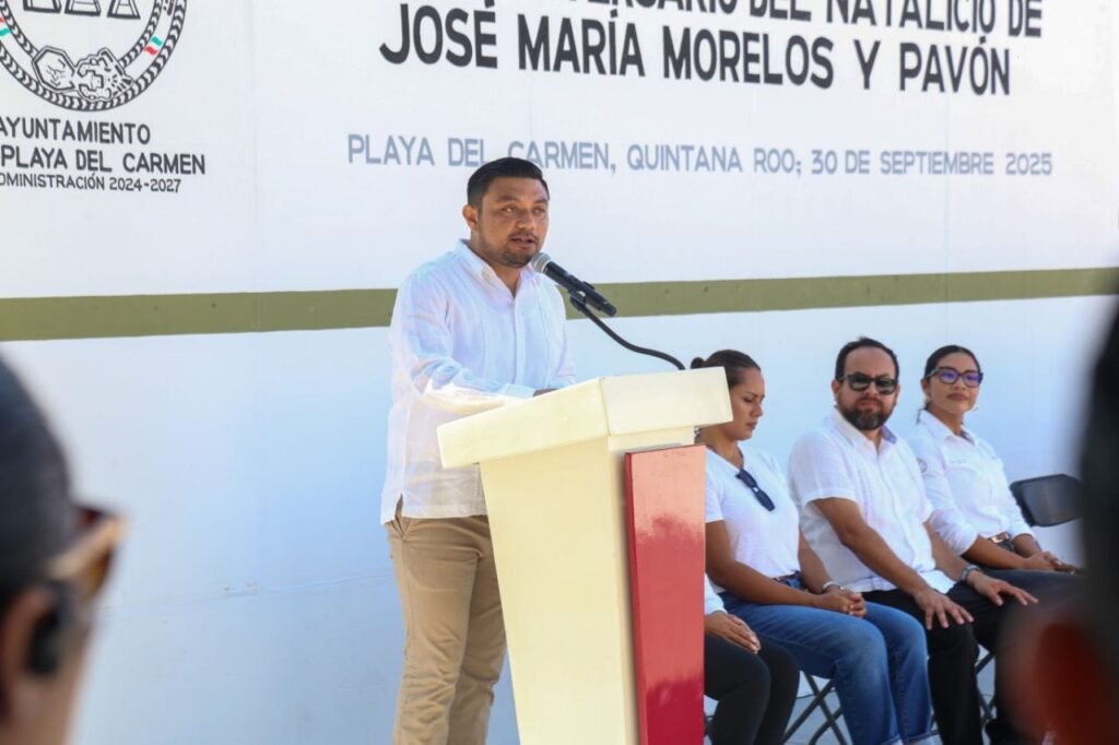 En el marco del 260 aniversario del natalicio de José María Morelos y Pavón, el gobierno municipal de Playa del Carmen, encabezado por la presidenta Estefanía Mercado, realizó una solemne ceremonia cívica en la que se rindieron honores a la bandera y se entonaron los himnos de Quintana Roo y Nacional Mexicano, reafirmando el respeto a los símbolos patrios.